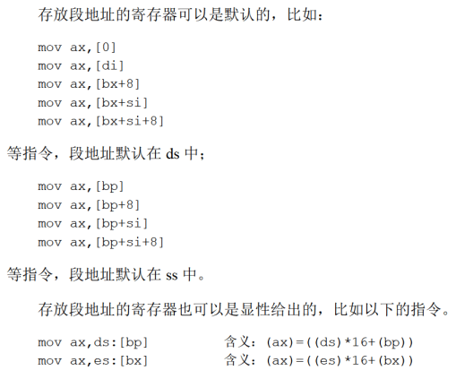 ③只要在[......]中使用bp,而没有显性的给出段地址,那么段地址默认在ss中