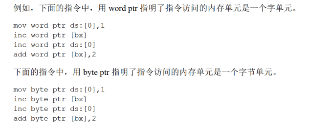 ②没有寄存器名的话,用操作符X ptr指明,X可以为word或byte
