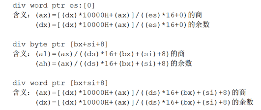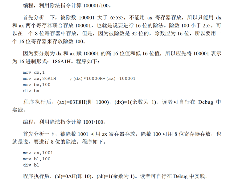 ①除数:有8位和16位两种,在一个reg或内存单元中