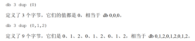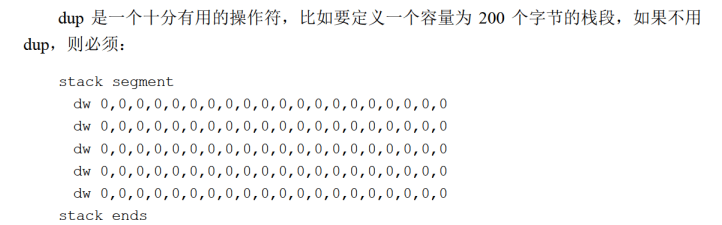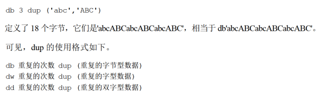 dup是一个操作符,是和db、dw、dd配合使用的,用来进行数据的重复