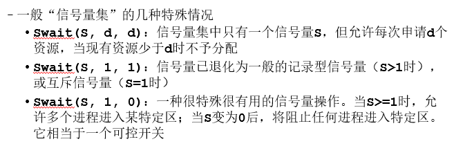 S->value的初值表示系统中某类资源的数目,因而又称为资源信号量,对他的每次wait操作,意味着进程请求一个单位的该类资源,使系统中可供分配的该类资源数减少一个,描述为S->value--