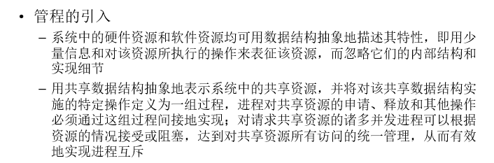 Hansan的定义:一个管程定义了一个数据结构和能为并发进程所执行(在该数据结构上)的一组操作,这组操作能同步进程和改变管程中的数据。