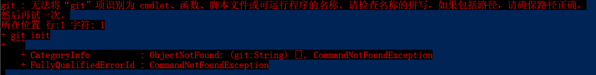 无法将“git”项识别为 cmdlet、函数、脚本文件或可运行程序的名称。请检查名称的拼写,如果包括路径,请确保路径正确
