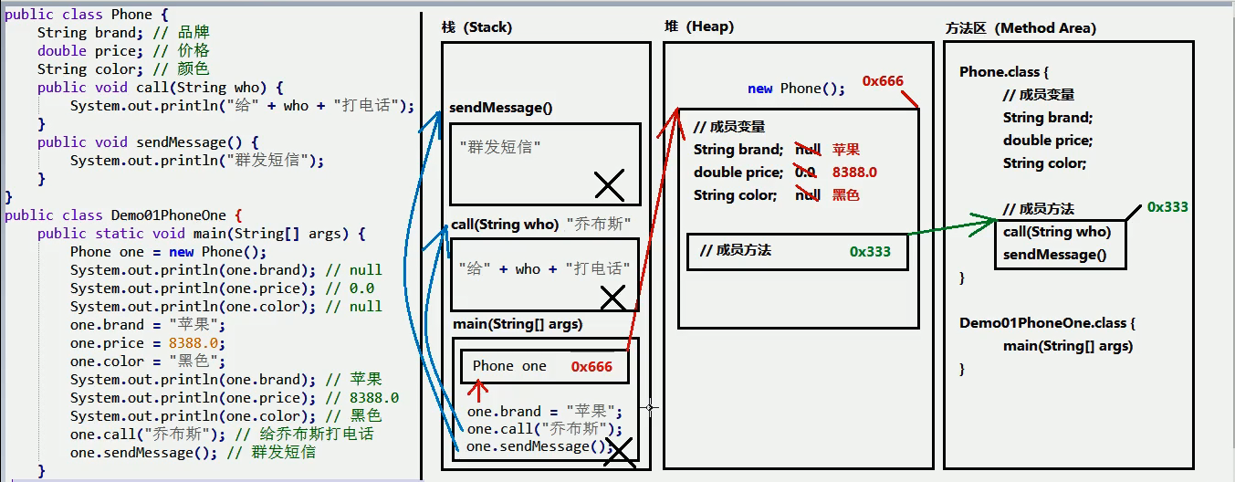 成员变量: 在方法的外部,直接写在类当中,整个类当中都可以通用,没有初始值会有默认值,位于堆内存,随着对象创建而诞生,随着对象被垃圾回收而消失。