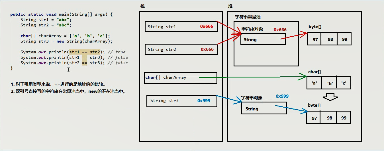 字符串常量池: 程序当中直接写上的双引号字符串,就在字符串常量池中