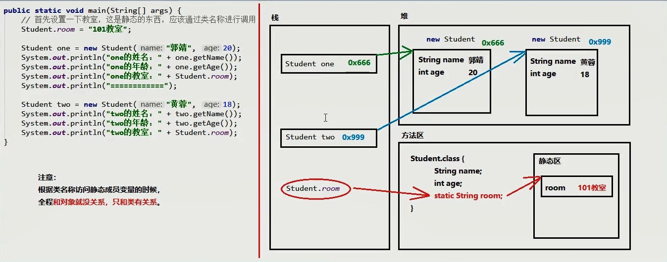 注意: 静态不能直接访问非静态,静态方法中不能用this