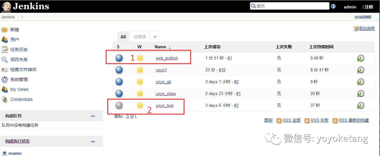 1.举个案例场景,比如我下面Job1是web项目打包并发布的构建任务,我想每次打完包发布后,然后触发自动化测试Job2的构建。