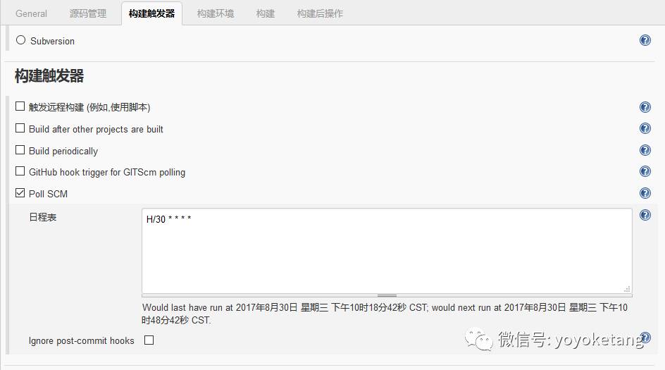 注:Build periodically和Poll SCM两者是可以结合起来使用的