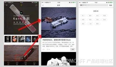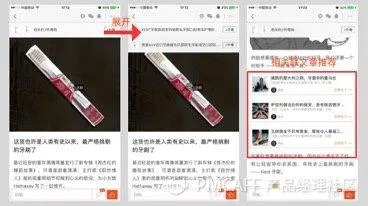 进入文章内容界面可以看到,导航栏直接将本文中关联的商品做了简单的排列,可以让用户不需要读完文章就可以了解到文章中所涉及到的商品,同时提供了相应的介绍和购买链接,还可以将自己感兴趣的产品进行标注,方便后面进行回顾,而文章中部也会加入相关联文章的推荐,提高用户的增购行为
