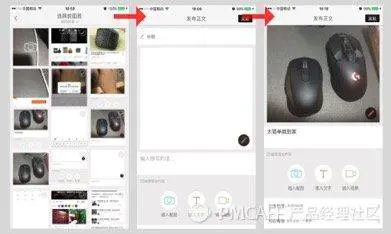 发帖功能直接进入相册选择封面内容,可以进行文字,图片以及视频的插入编辑功能,文章编辑支持多张图片上传,图文混排格式自定义,支持最长120秒的视频录制,支持本地上传录像进行压缩(只保留120秒)