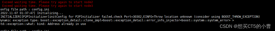 [INITIALIZER][P2PInitializer]initConfig for P2PInitializer failed,check Port=30302,EINFO=Throw location unknown (consider using BOOST_THROW_EXCEPTION)
