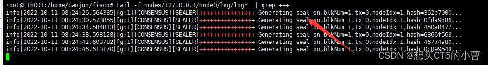 tail -f nodes/127.0.0.1/node0/log/log* | grep +++