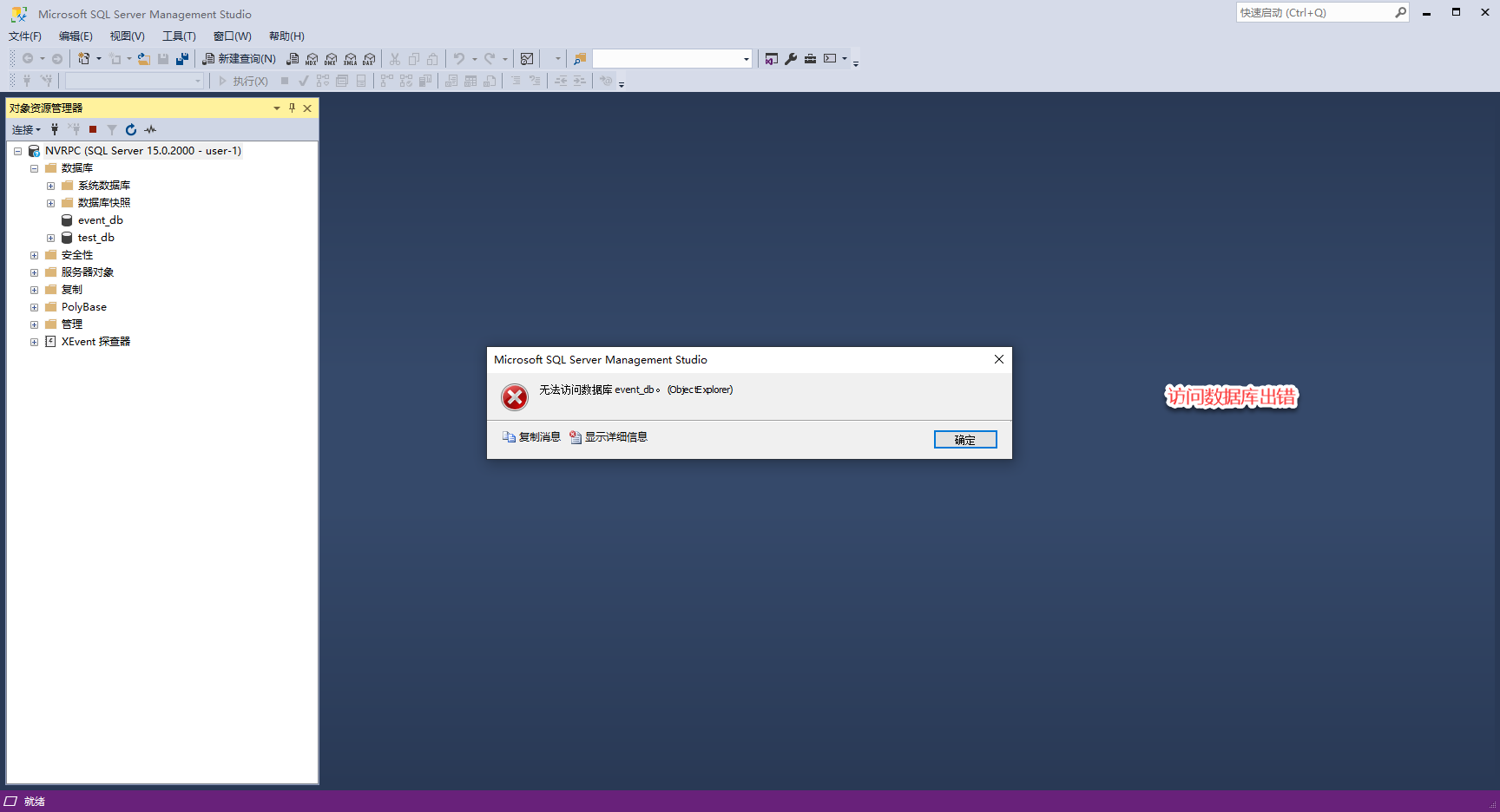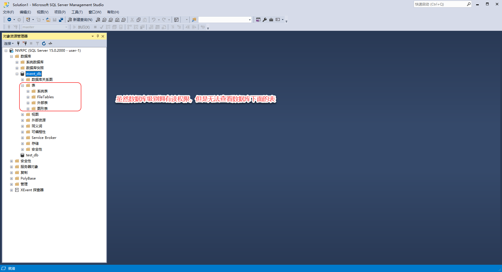 注意:虽然能访问数据库event_db,但数据库用户user-1只给了读权限,因此还是无法创建数据库