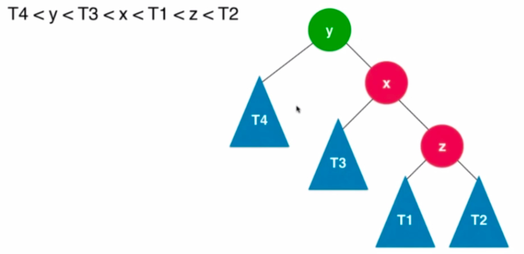 同时根据公式可知 由于T3比y小 故将T3放入 y的左子树。