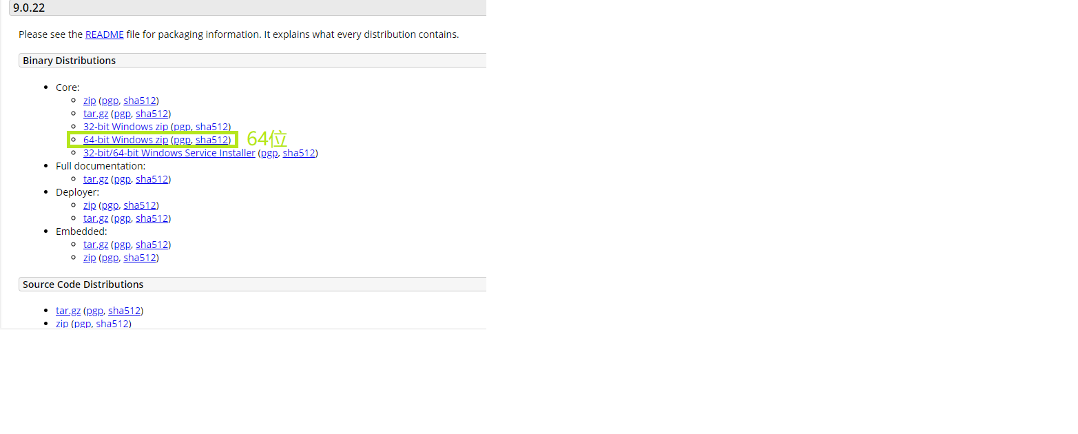 1.去官网下载tomcat的压缩包(https://tomcat.apache.org/download-90.cgi#9.0.22)。