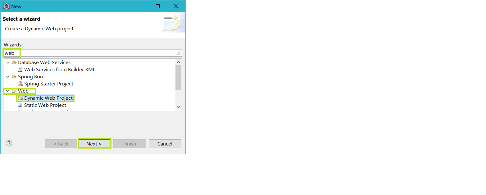 web ==>Dynamic Web Project ==>next