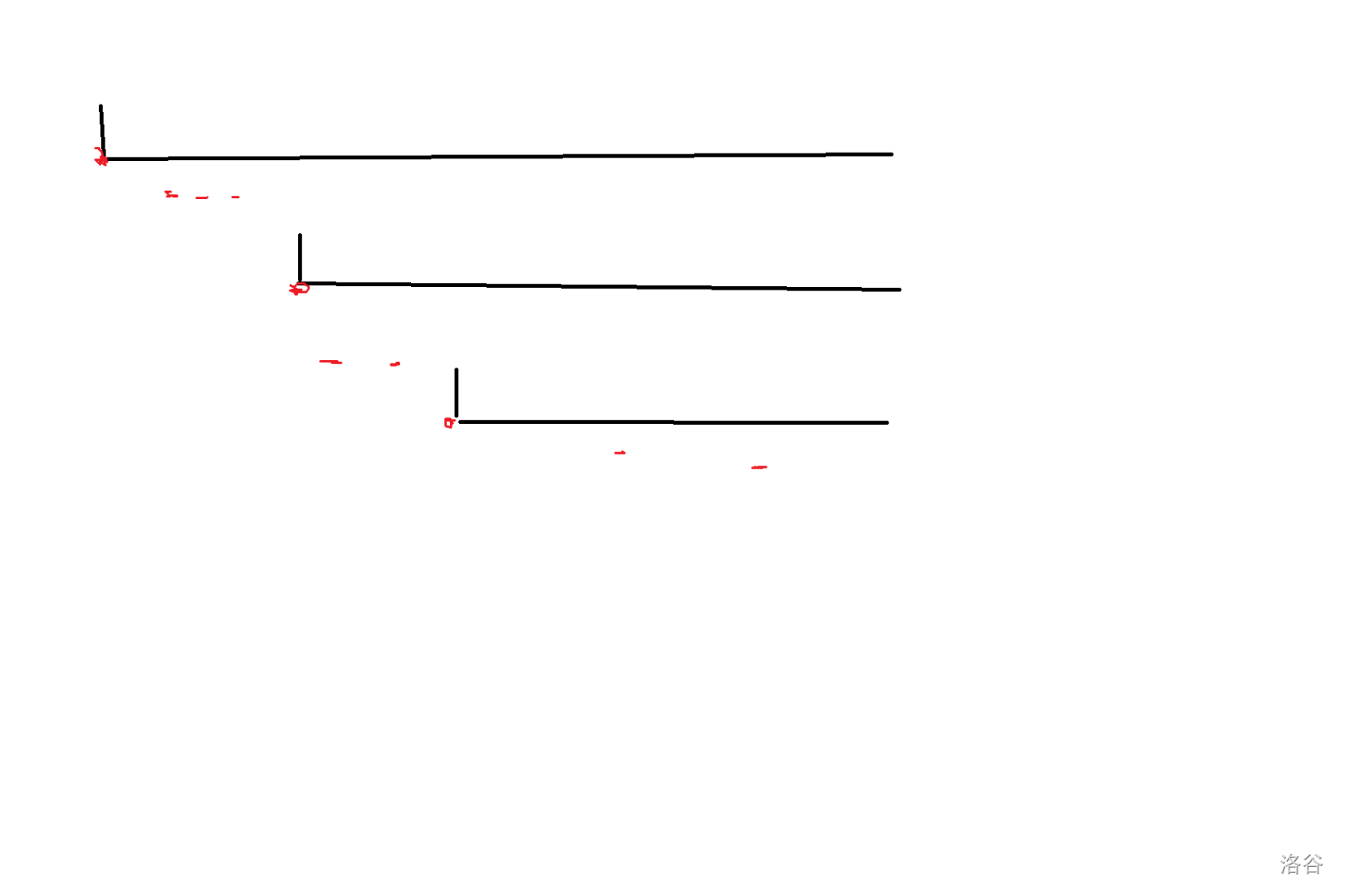 先只考虑这些前缀让每个点被覆盖的次数。假设 \(a\) 严格递增,那么 \(a_1+0.5,a_2+0.5,\cdots, a_k+0.5\) 这些位置被覆盖的次数依次为 \(k-1,k-2,\cdots,0\)(\(a\) 不严格递增一样这样考虑,这里只是为了表述严谨)。那么为后缀的那些区间就要覆盖 \(a_i+0.5\) 至少 \(i\) 次。又因为 \(a,b\) 不降,所以只需要满足 \(b_i\le a_i\) 即可。