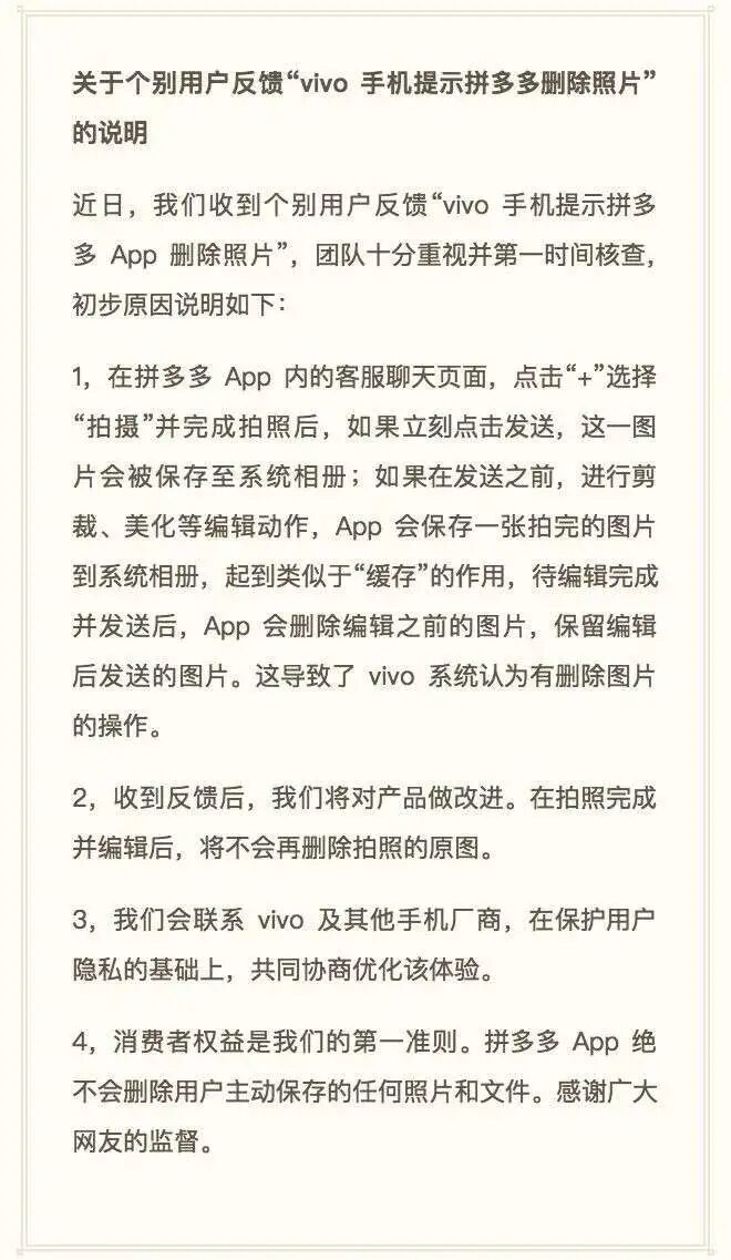 现在问题的焦点就在于是,拼多多究竟是因为 App 的 Bug 导致误删用户图片,还是有意为之?