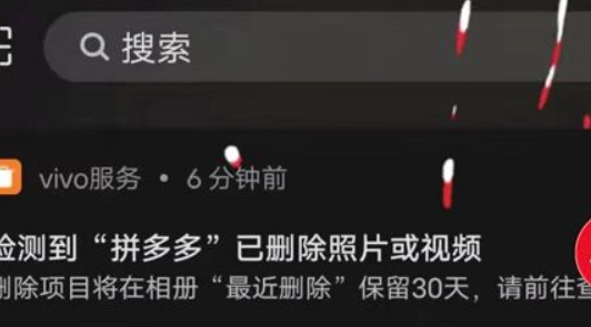 小哥用的Vivo手机显示,检测到“拼多多已经删除照片或视频”,小哥打开相册一看,“卧槽,刚截图的证据被删了!”