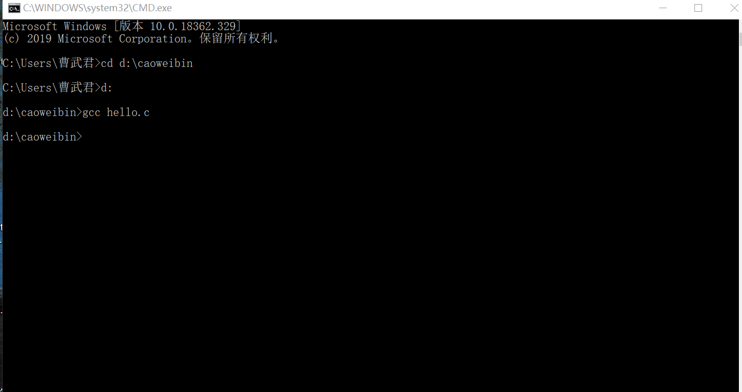 四. 请参考MinGW-w64安装教程完成GCC编译器的安装,并用 MinGW-w64 来编译 C程序。(要求在博客作业中贴出编译完成照片,和编译后生成文件的照片)
