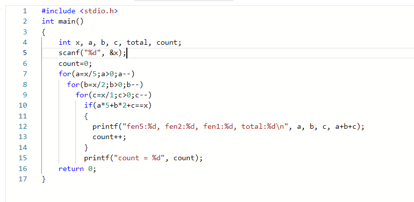 - 数据表达:用了x, a, b, c, total, count这些变量是int类型
