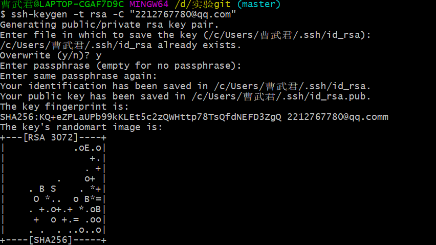 获得密钥:ssh-keygen -t rsa -C "邮箱"