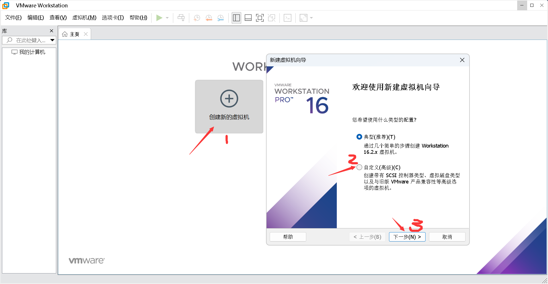 选择稍后安装,客户机操作系统选择第一个{每个系统可以操作的模式及其功能不同}。