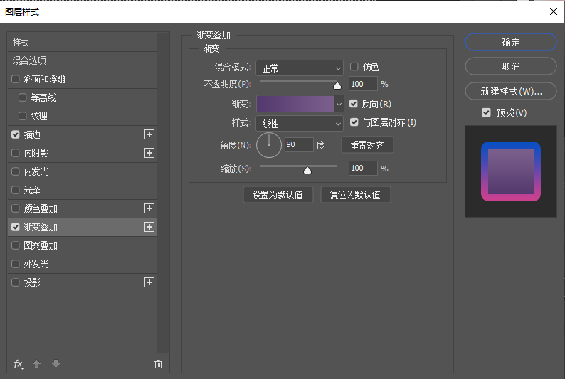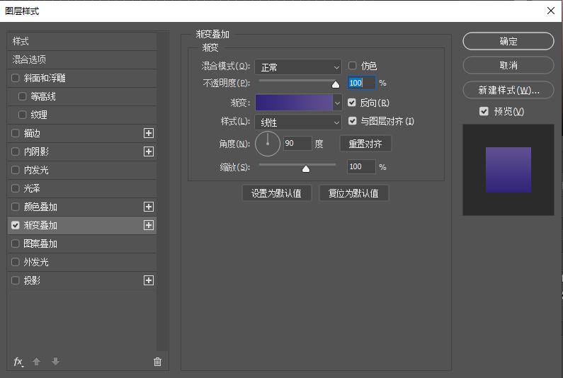 9. 重复上述操作使用椭圆工具,绘制一个77px的圆,并为他添加图层样式,渐变叠加0的颜色为#5e4f90,100的颜色为#322479