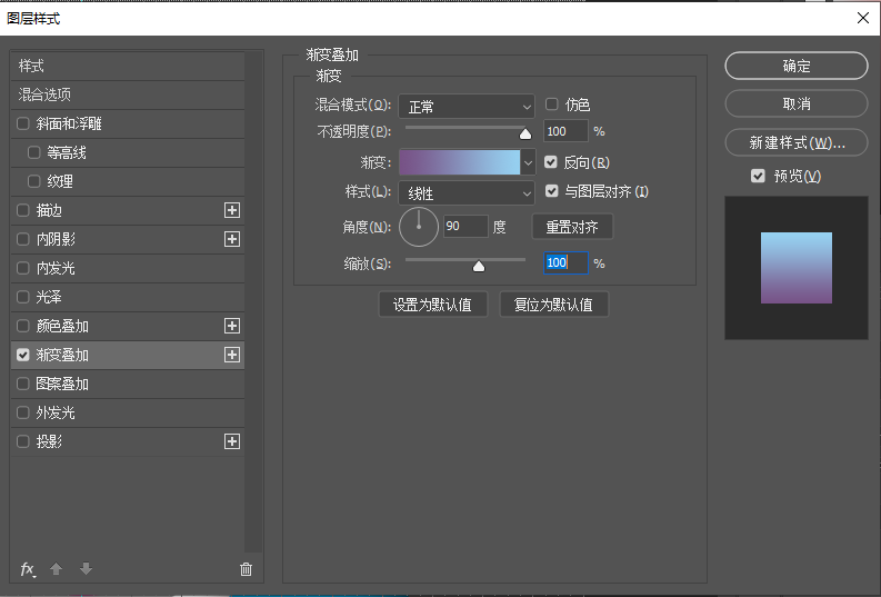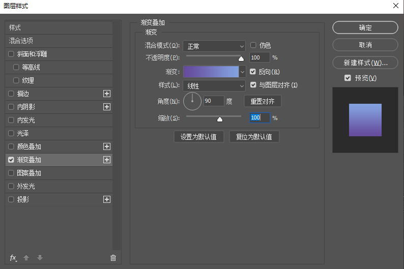 8. 继续使用椭圆工具,绘制一个115px的圆,并为他添加图层样式,渐变叠加的0颜色为#83a1df,100的颜色为#664b9c