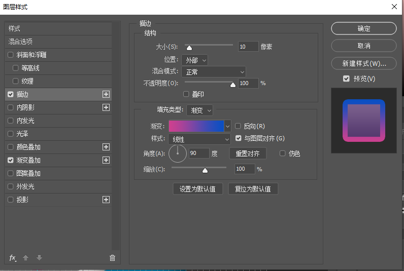 2. 开始绘制底座,使用圆角矩形工具,绘制一个520*520px圆角半径为90px的底座,并添加图层样式
