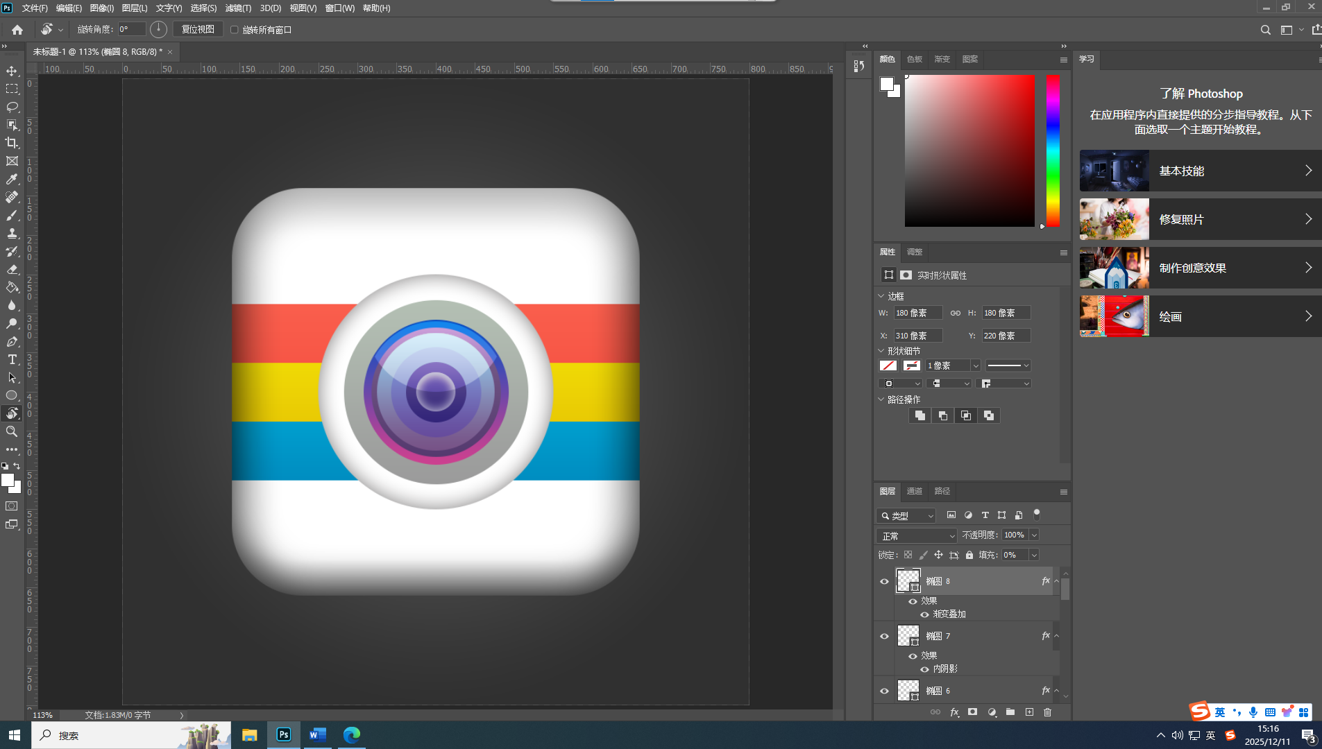 10. 绘制最后一个圆,使用椭圆工具绘制一个50px的圆,填充数值为0,并为他添加图层样式