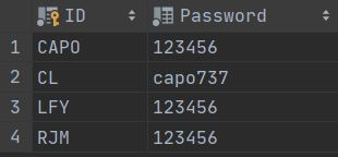 insert into list set ID='CAPO',Password='123456';