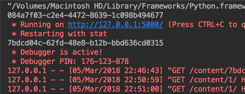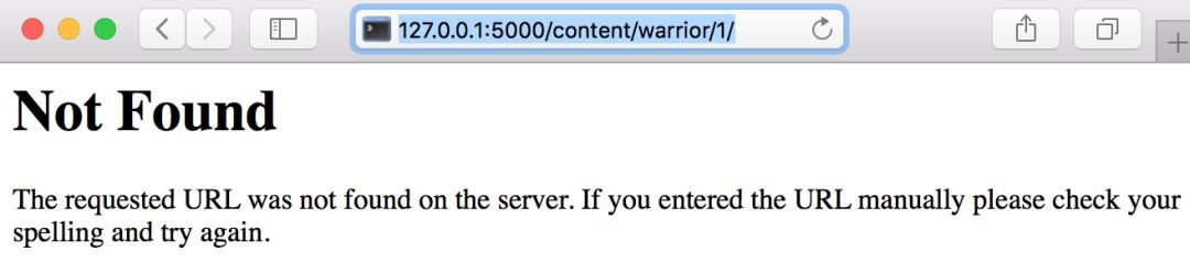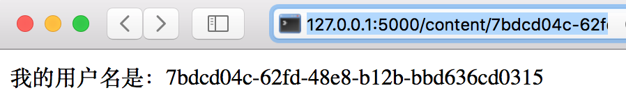 这时候因为我们指定了username是uuid类型的,所以当我们进入http://127.0.0.1:5000/content/1/的时候就会找不到地址,我们将控制台打印的uuid替换1:http://127.0.0.1:5000/content/7bdcd04c-62fd-48e8-b12b-bbd636cd0315/就可以看到: