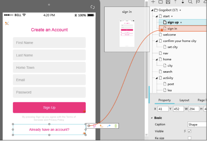 这个软件也是进行交互设计的好帮手,它的特点就是设计上相对的轻便快捷。只需要根据层级移动组件位置,就可以创造出对应的交互效果。同时,此工具也采用了拖拽链接点来作为基本的操作方式。这种操作中的高度可视化,使得设计的过程变得十分简单有效。