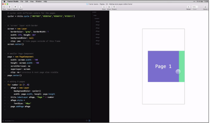 原型设计想做到功能全面,那就难免会和代码挂上钩。此软件的使用难度相对于第一个来说偏大一些,它的变量、判断等等功能会难倒许多交互设计师。但它也有它的优势,Framer JS诠释了到底什么才是用代码“写”原型。这才是这一类中真正以代码为基础的原型设计工具,只要能够写出相应的代码,它就可以把你的想法通通变成现实。