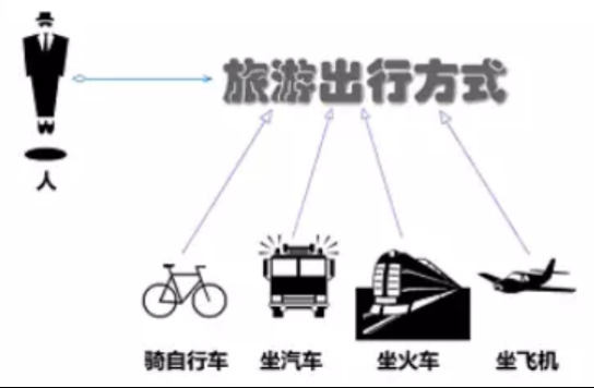 先看下面的图片,我们去旅游选择出行模式有很多种,可以骑自行车、可以坐汽车、可以坐火车、可以坐飞机