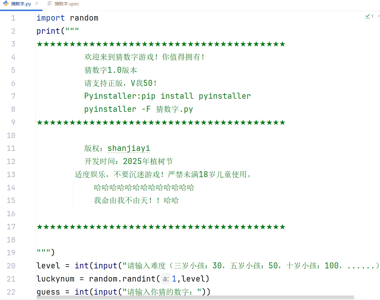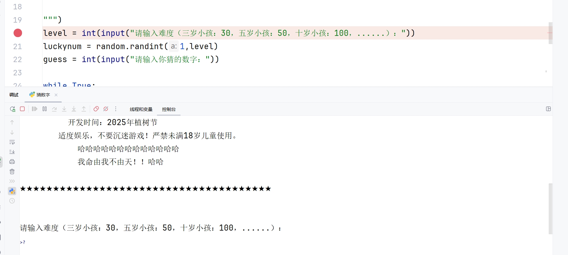 3.掌握基本的Python编程技巧,编写程序,练习变量和类型、字符串、对象、缩进和注释等,(编写了一个可以自选等级的猜数字游戏)