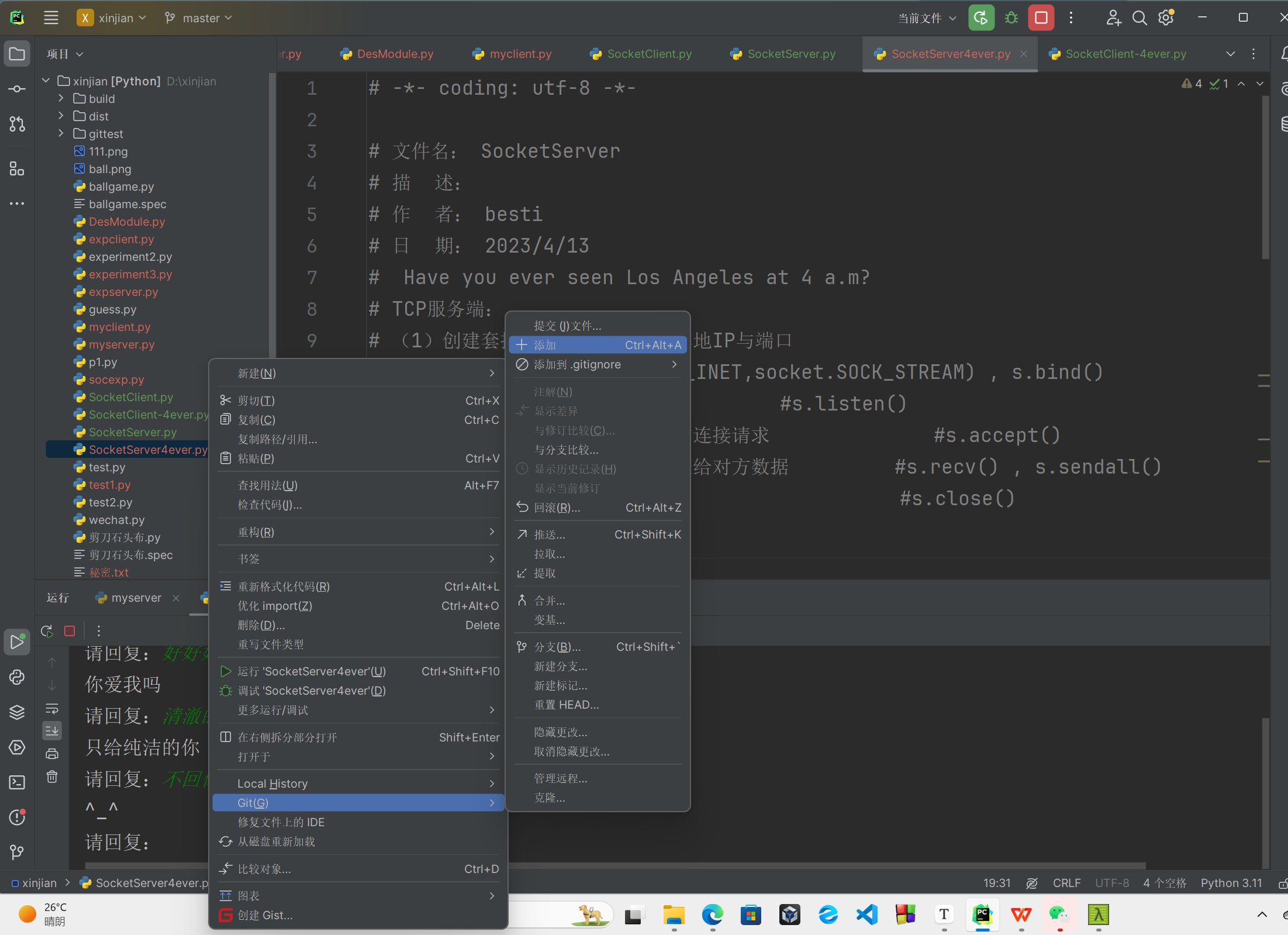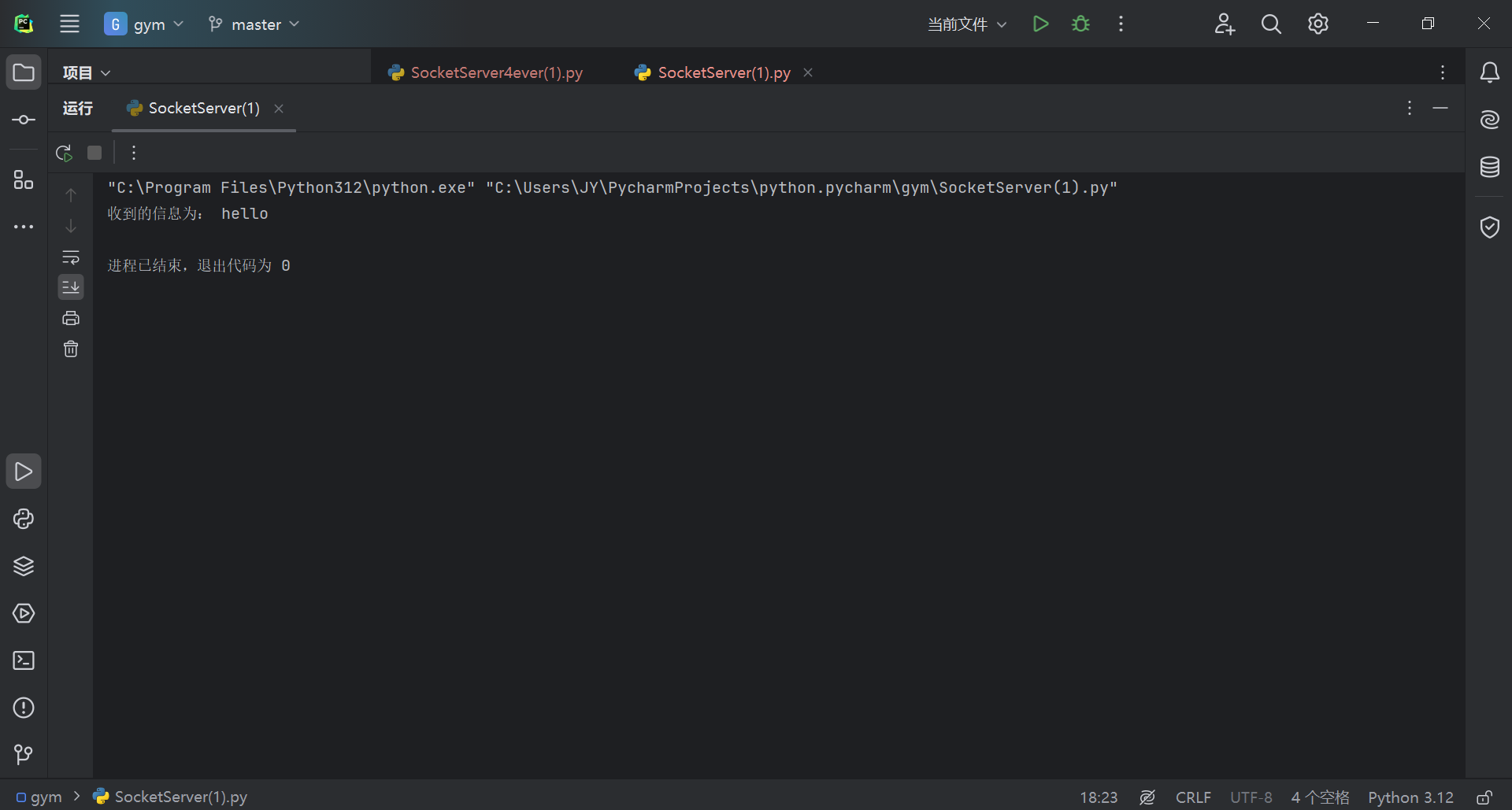 1.2.1创建服务端和客户端,选择一个通信端口,用Python语言编程实现通信演示程序;