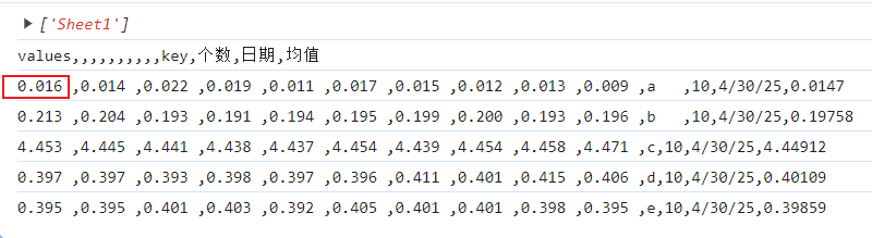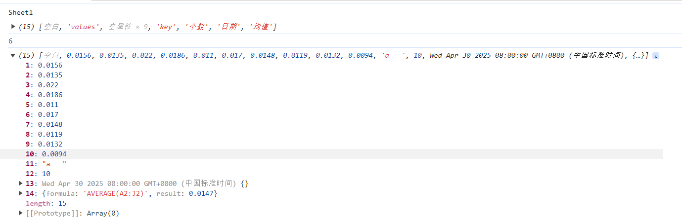 结果:读取的数值为文档的实际存储数值。并且各单元格依照存储的格式解析为对应的值,公式单元格中包括公式和结果。