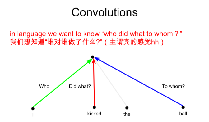 - 因为如果是convolutional sequence model可以通过不同的filter,来学习不同的"feature",比如下图1中关于一个sentence中的“who”、“did what”、“to whom”。(Different linear transformations by relative position)