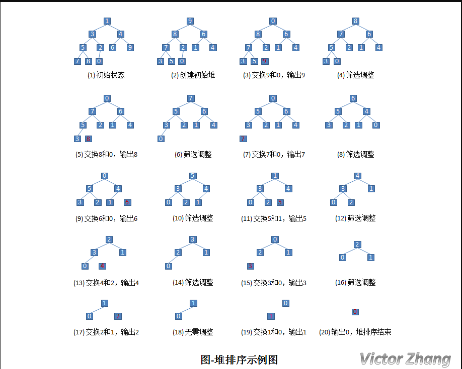 构造了初始堆后,我们来看一下完整的堆排序处理: