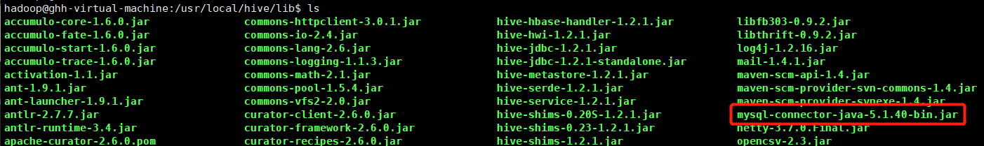 - 下载合适版本的mysql jar包,拷贝到/usr/local/hive/lib目录下