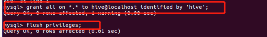 - 配置mysql允许hive接入