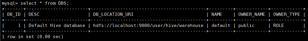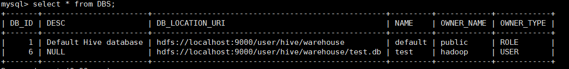 - mysql查看hive元数据表DBS