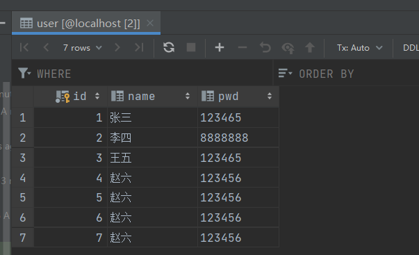 mapper.insertUser(new user(7, "赵六", "123456"));