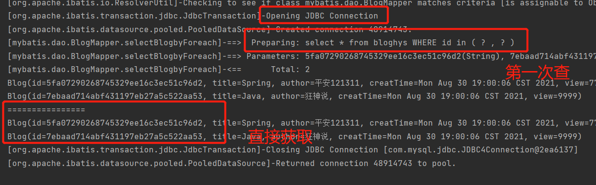 图1表示一次会话中进行两次相同的查询,图二为debug调试查看,第二次直接走缓存