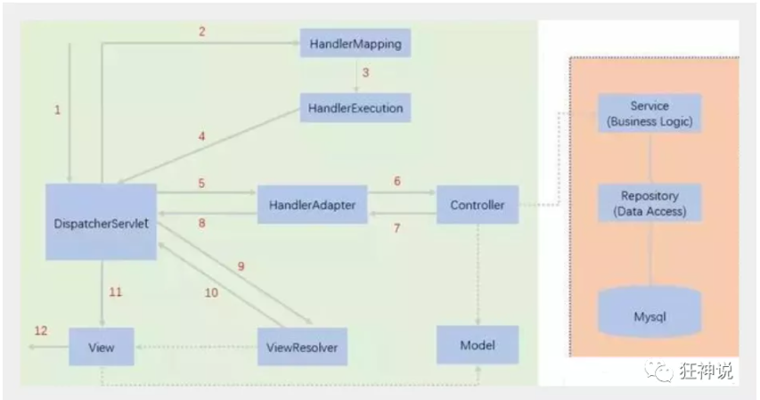 Spring MVC的核心是前端控制器(DispatcherServlet),也是一个servlet,接受前端所有的请求,