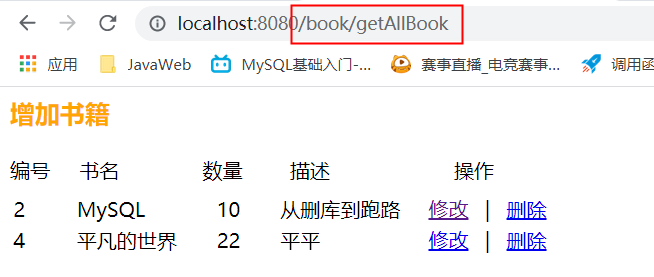 allbooks.jsp 如下,可以增加书籍,已经带现有书籍的修改以及删除
