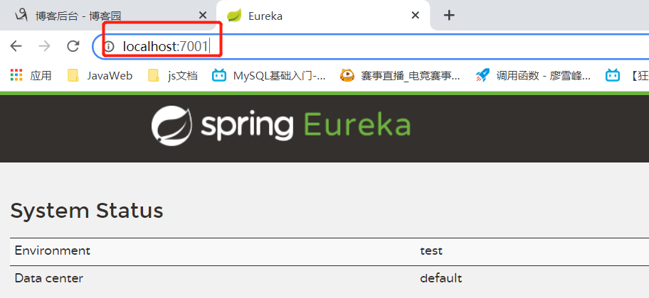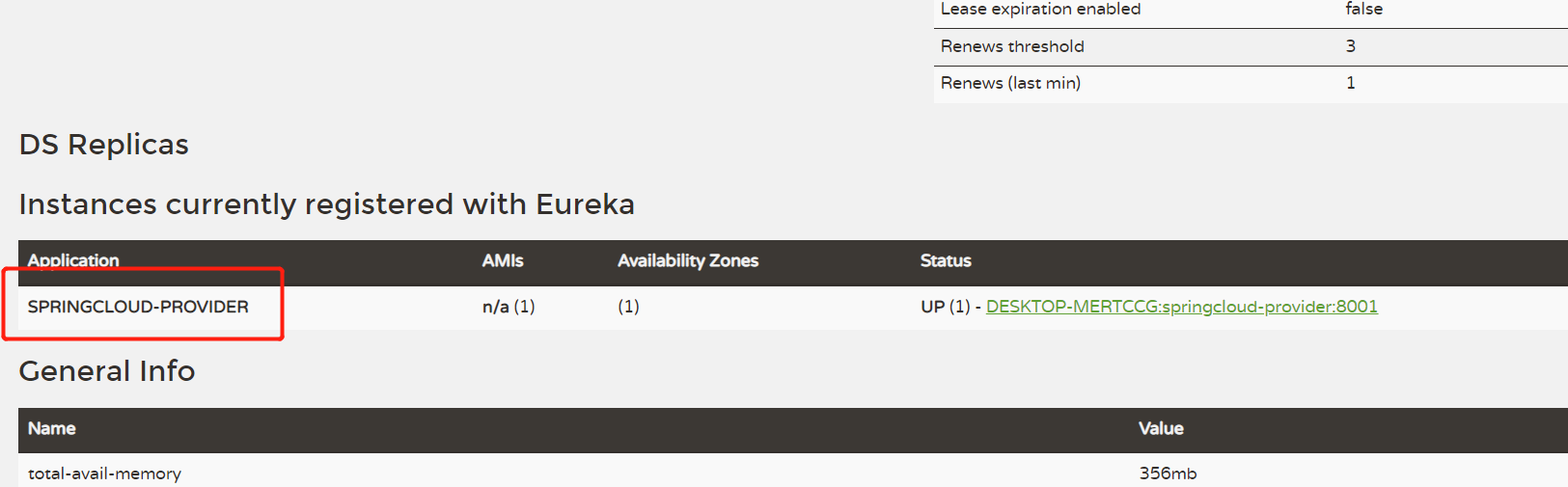 eureka网页端口,可以查看是否已被注册: