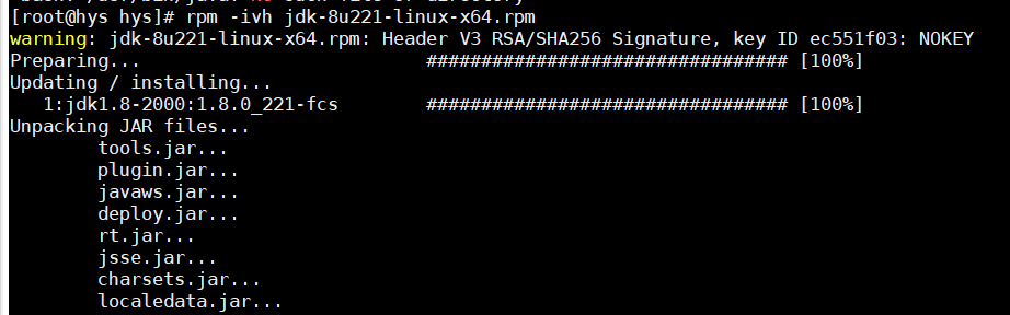 rpm -ivh jdk-8u221-linux-x64.rpm